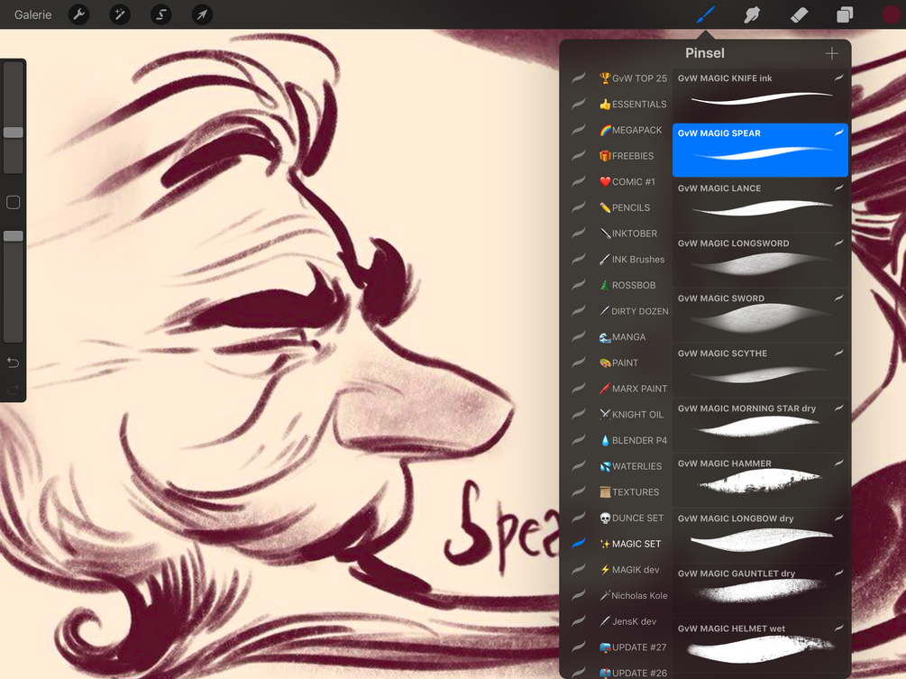 - MAGIC SPEAR: A versatile all-rounder brush for sketching, inking, and painting with nice dynamics and a very natural flow. Use tilt for blocking forms, painting, and shading.