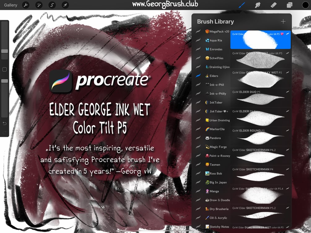 Visit GeorgBrush.club to learn more about my 1.000+ brushes, 150+ swatches, 50+ tools, fonts, and templates.Β Download tons of free brushes and useful freebies.Β Check out theΒ artwork gallery, demo videos, and brush reviews.Β- How to download & install brushes?Β