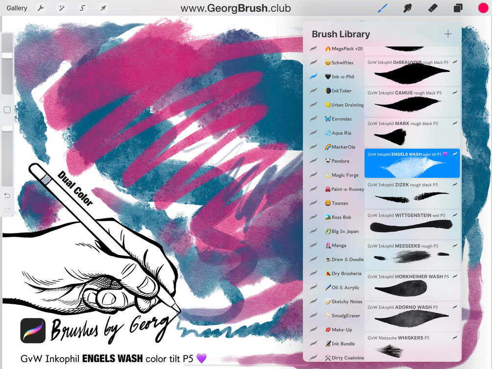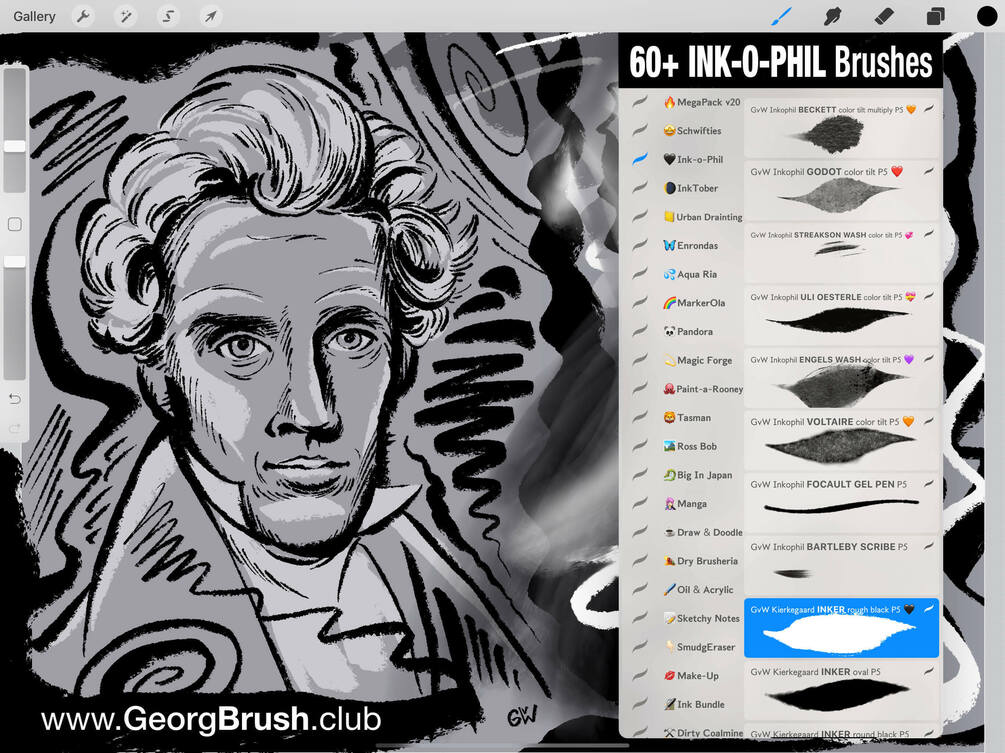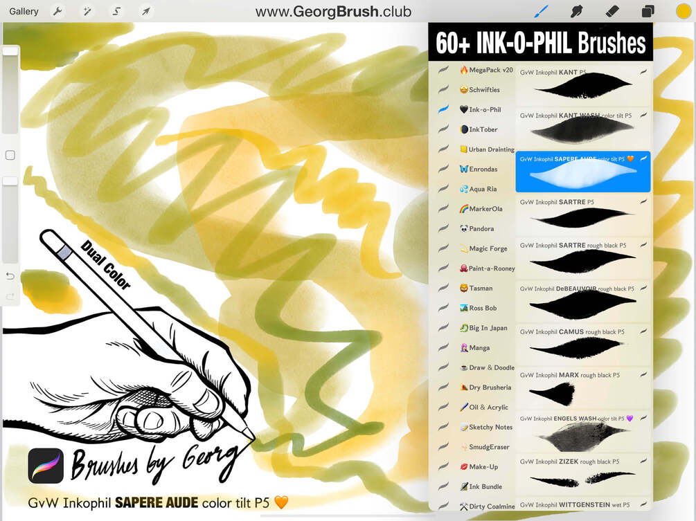 The "INK-O-PHILES" are part of my brand-new 1.000+ Brushes Procreate MegaPack (v20.0) and now also available as versatile stand-alone set for professional artists, illustrators, and hobbyists.Â